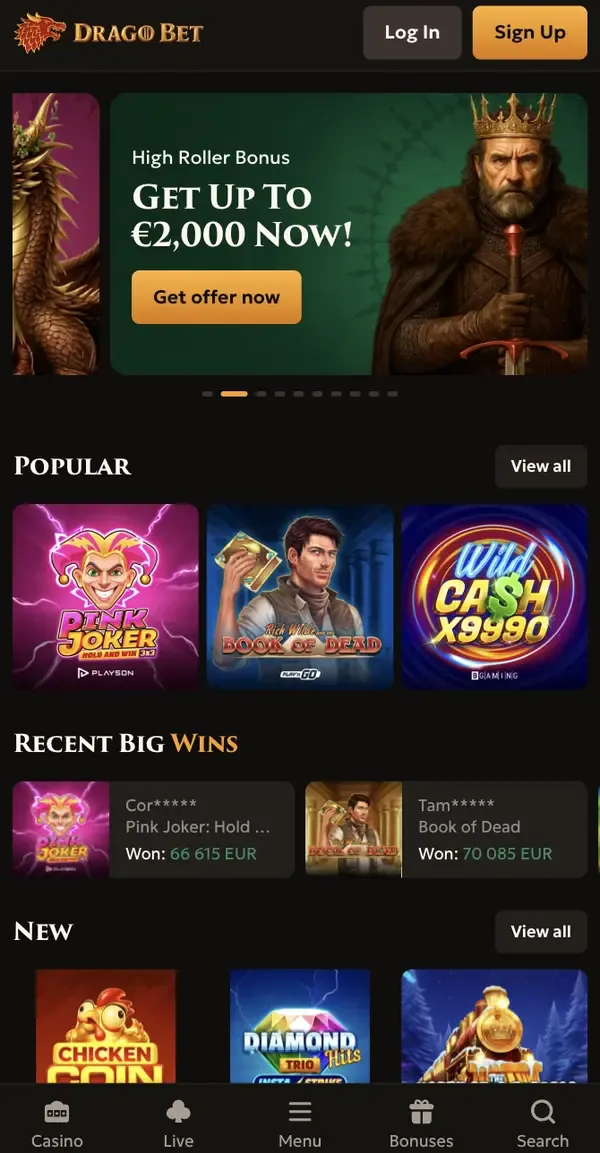 - Εύκολη Πλοήγηση: ένα compact lobby, γρήγορη αναζήτηση και καθαρές κατηγορίες σε πλακίδια σε βοηθούν να φτάσεις σε DragoBet slots και επιτραπέζια με λιγότερα taps.
